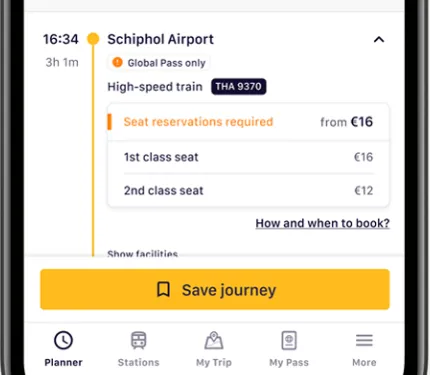 Omdat Interrail geldig is bij meerdere vervoerders, en het geld eerlijk verdeeld moet worden, moet je bijhouden met welke treinen je reist. Je gebruikt hiervoor de reisplanner in de app. Je kunt de reis opslaan via "Save Journey". Straks moet je de opgeslagen reis nog aan de Pass toevoegen (zie punt 3).