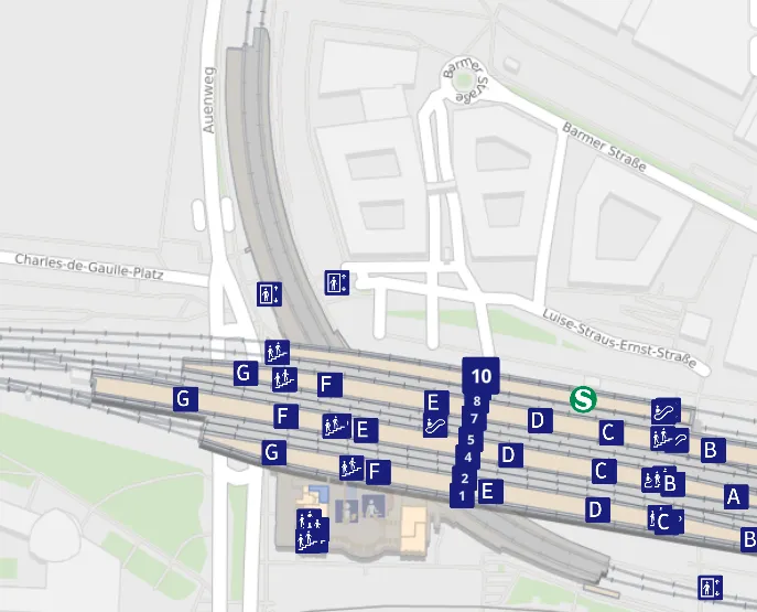 De treinen rijden frequent: vaak om de paar minuten vertrekt er een trein richting Deutz.