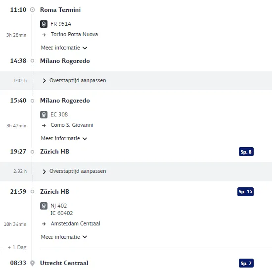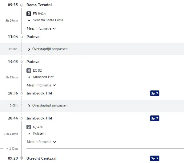 - Heb je geen extra dag bijgeboekt? Dan vertrek je na het ontbijt uit Rome. Je reist met een overstap in Verona naar Innsbruck, waar je de nachttrein naar Nederland neemt.
